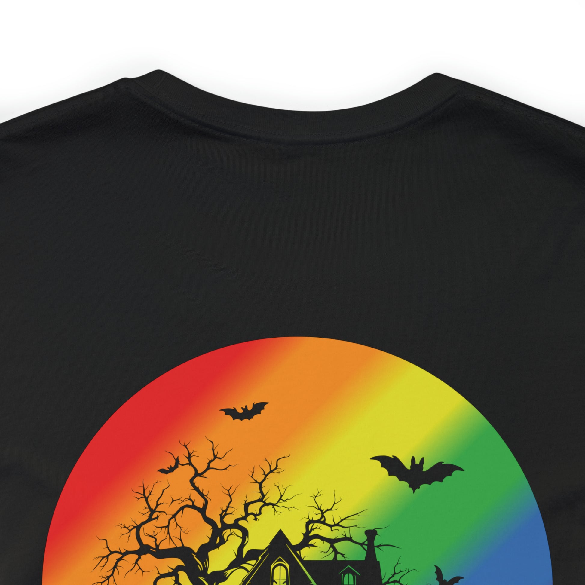 Haunted House w Rainbow Moon - Halloween 🎃Tee - Back Design