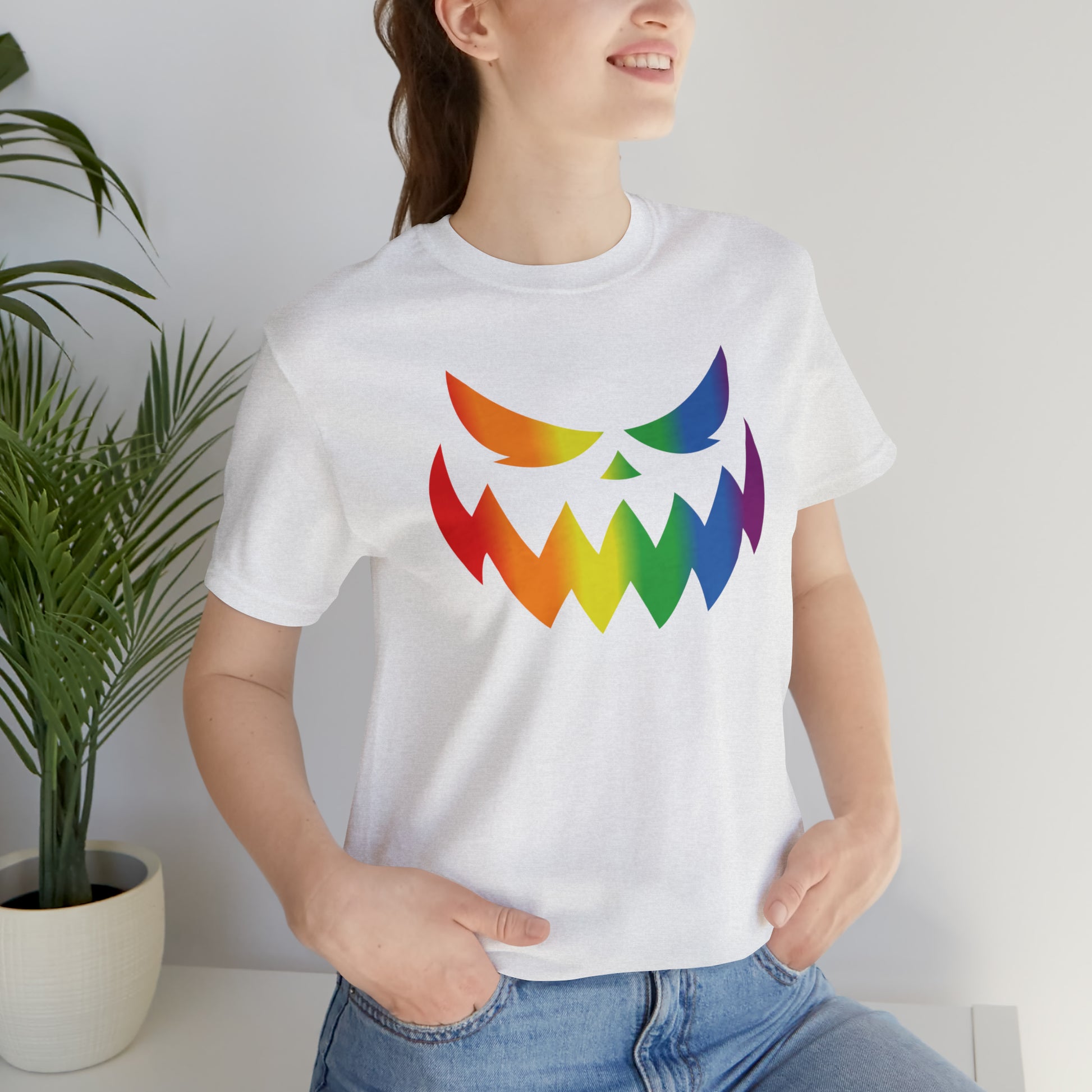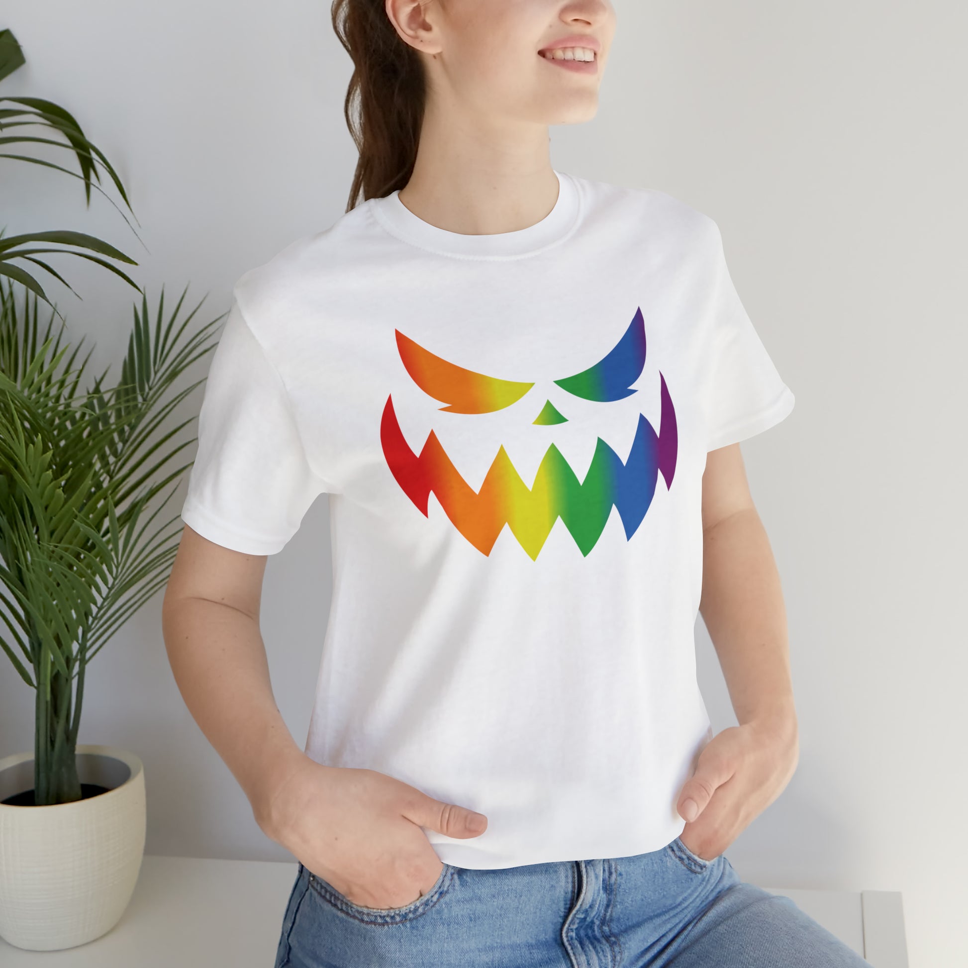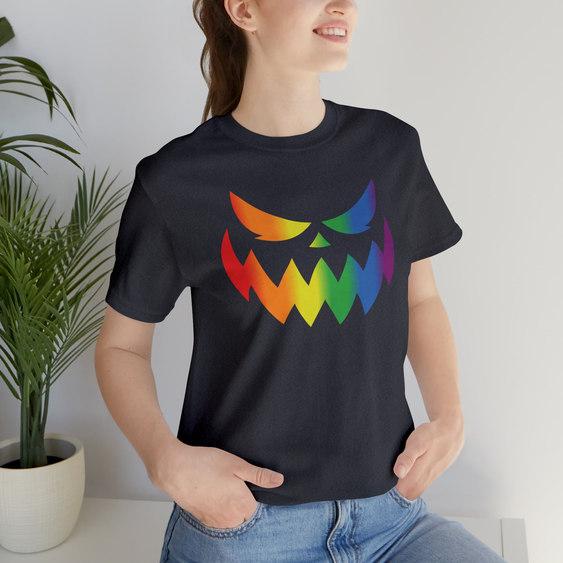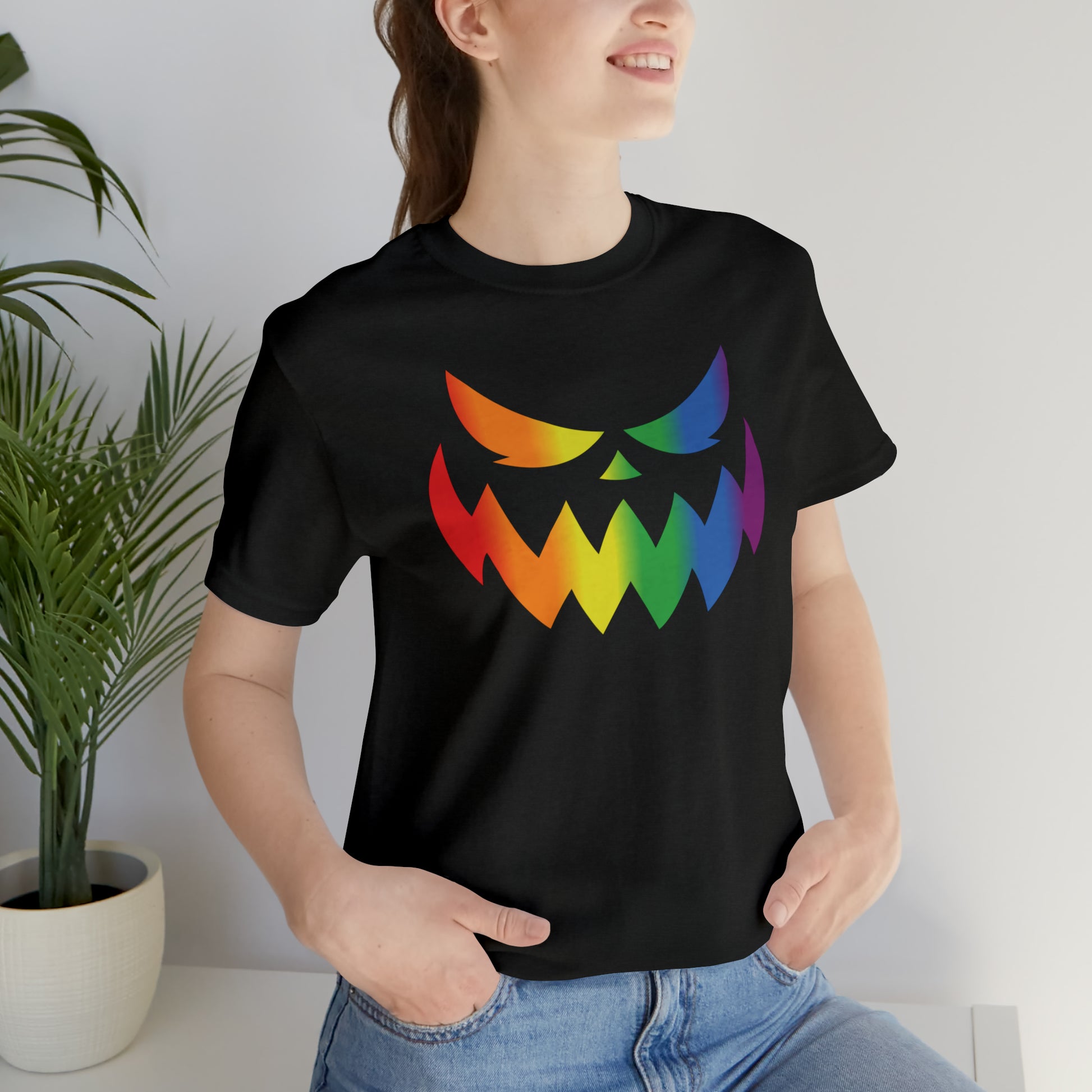 Rainbow Jack-o-Lantern Face - Halloween 🎃 Tee - Front Design