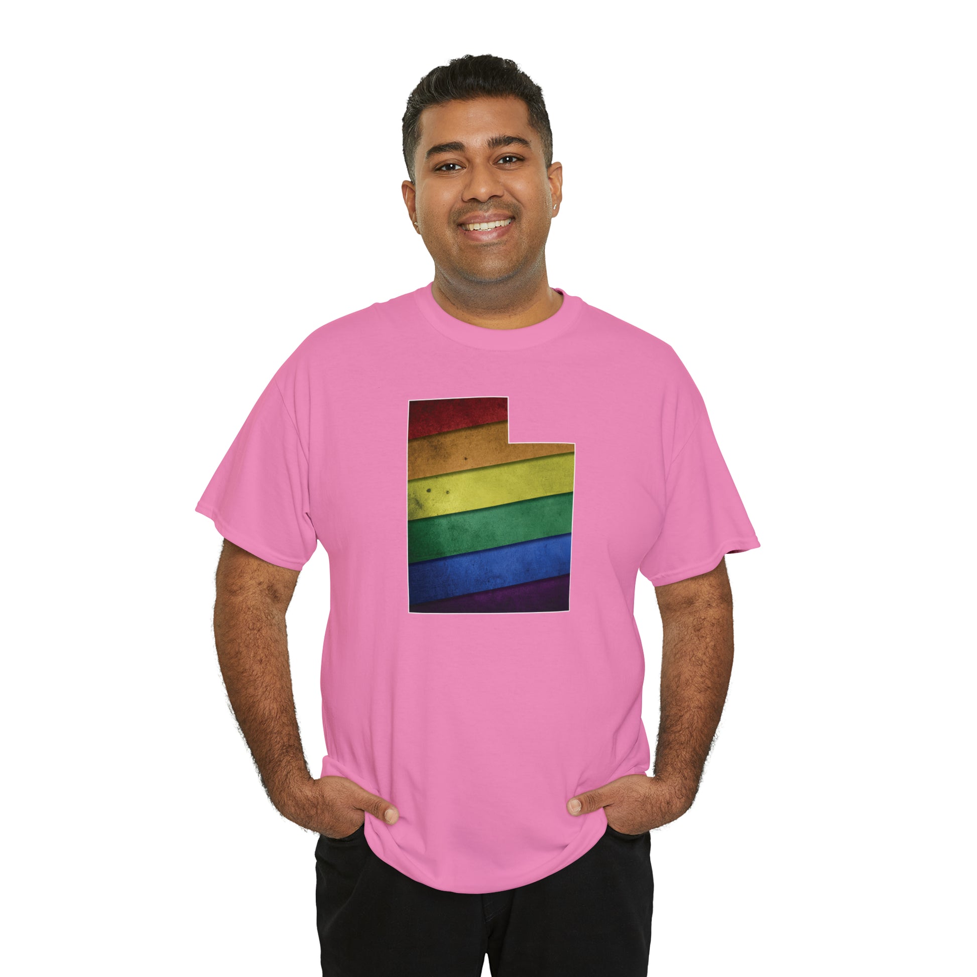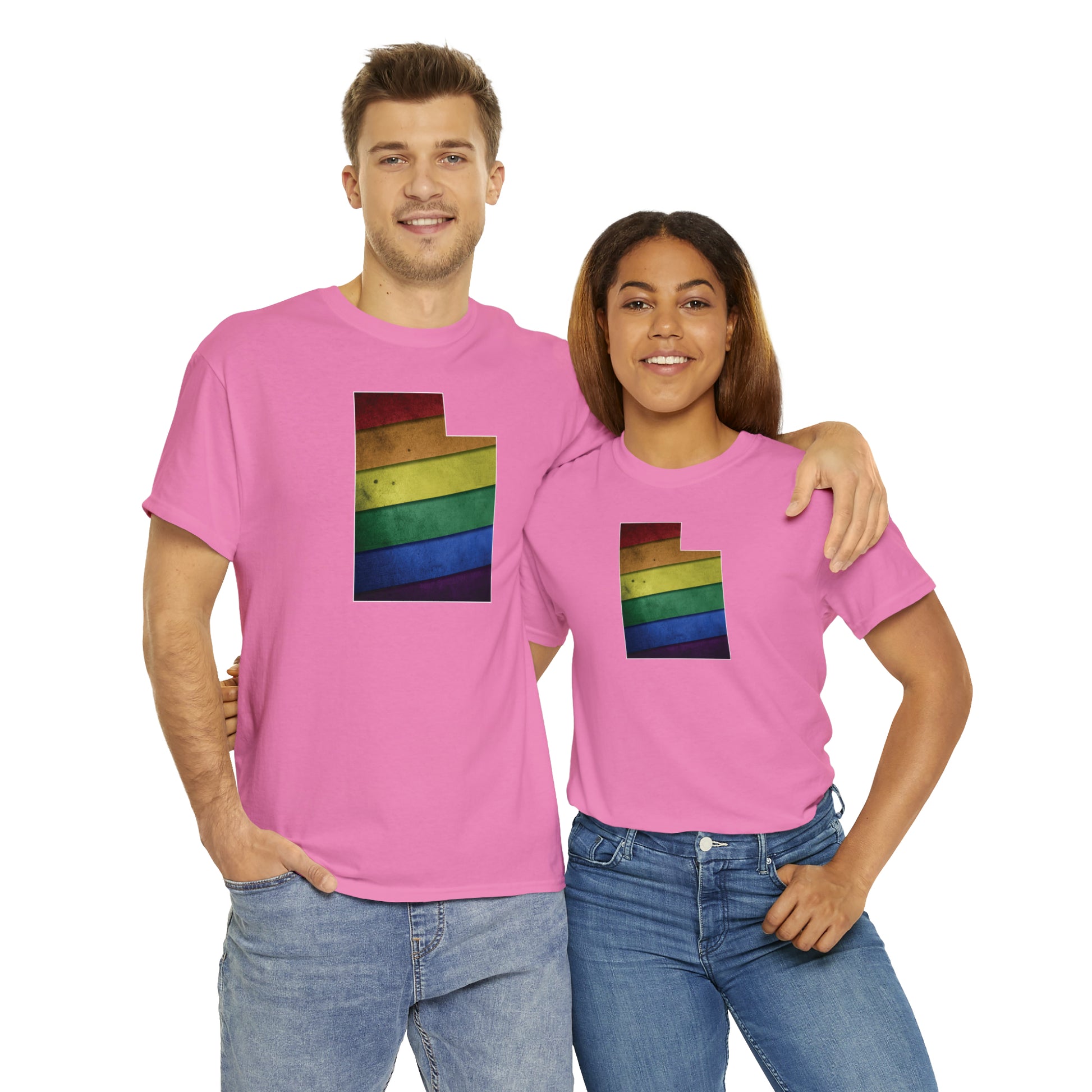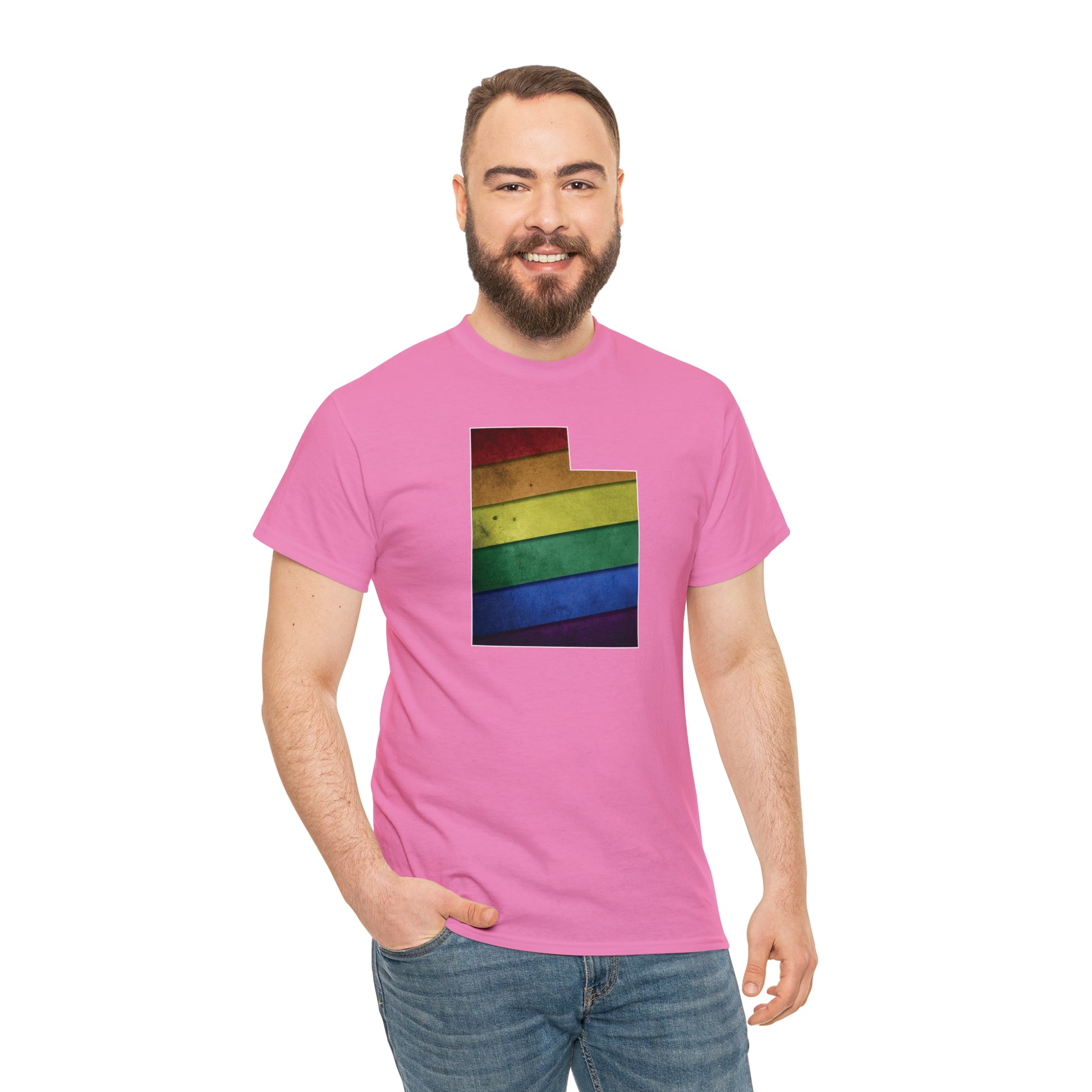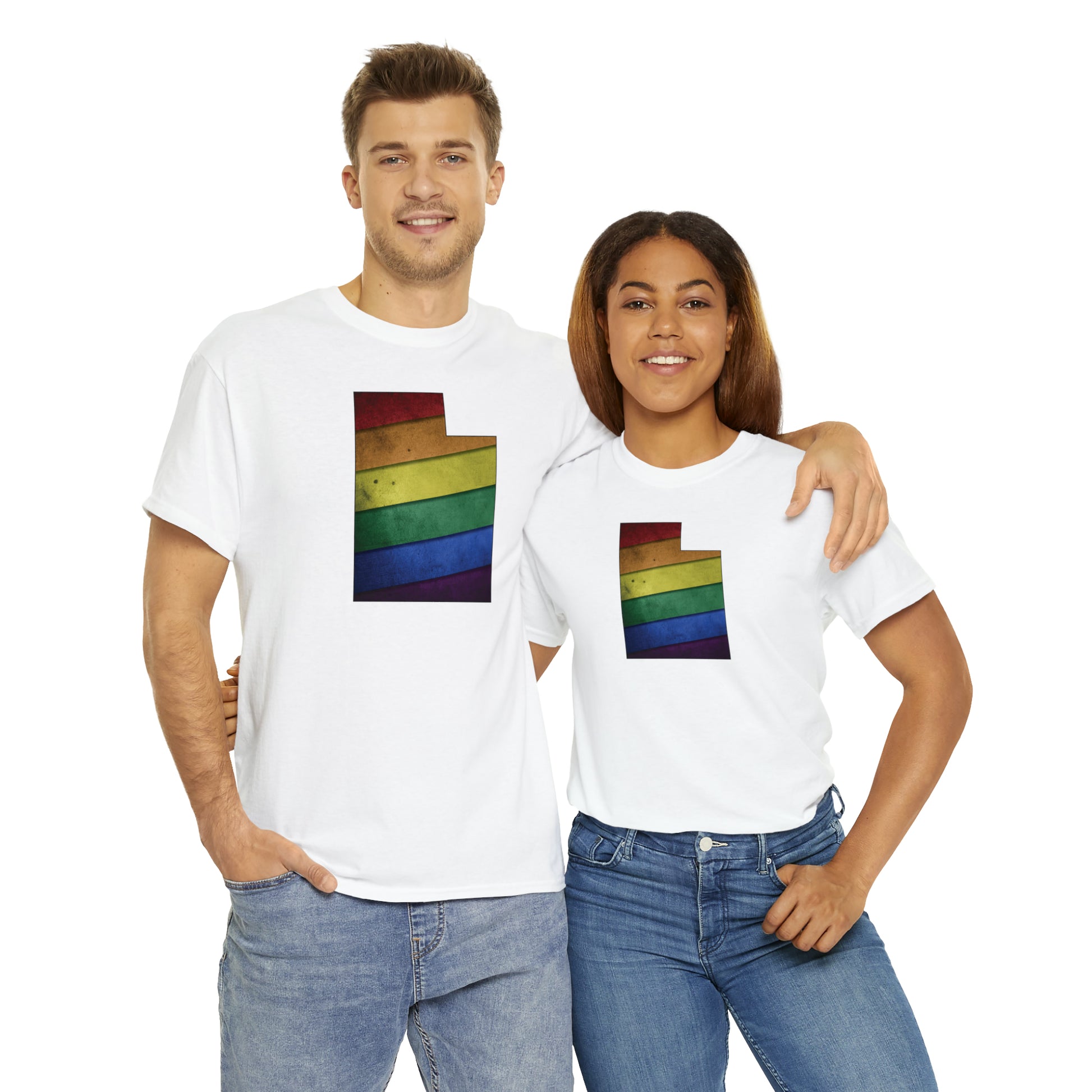 UTAH! Celebrate Pride Month! Let your colors fly with this soft, comfortable premium pride shirt. A rainbow state of Utah is front and center, with an artistic and visually captivating background. This commemorative tee completes any outfit. And it makes a terrific souvenir to remind you of the festivities for years to come! The shirt comes in several loud and proud colors with sizes up to 5XL!