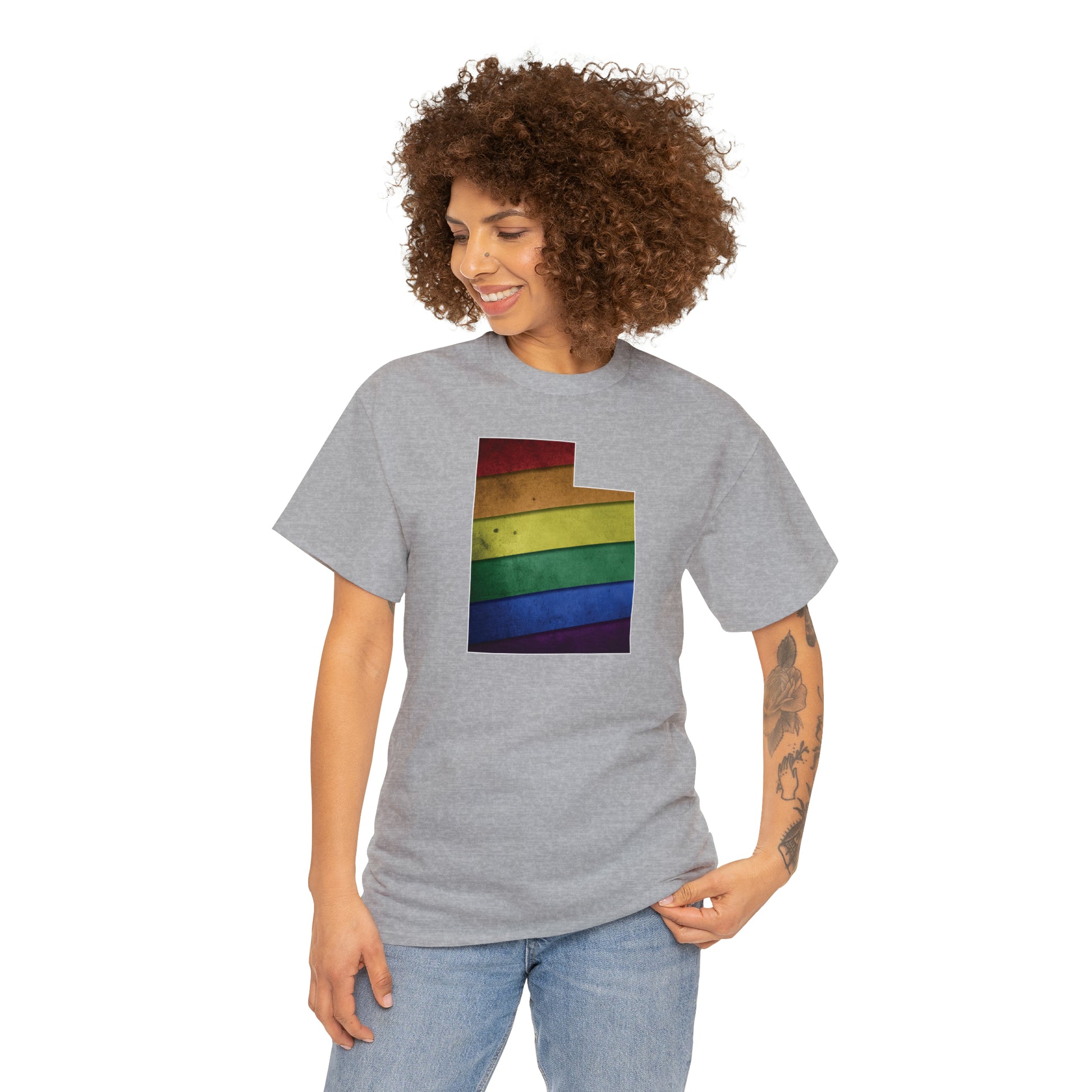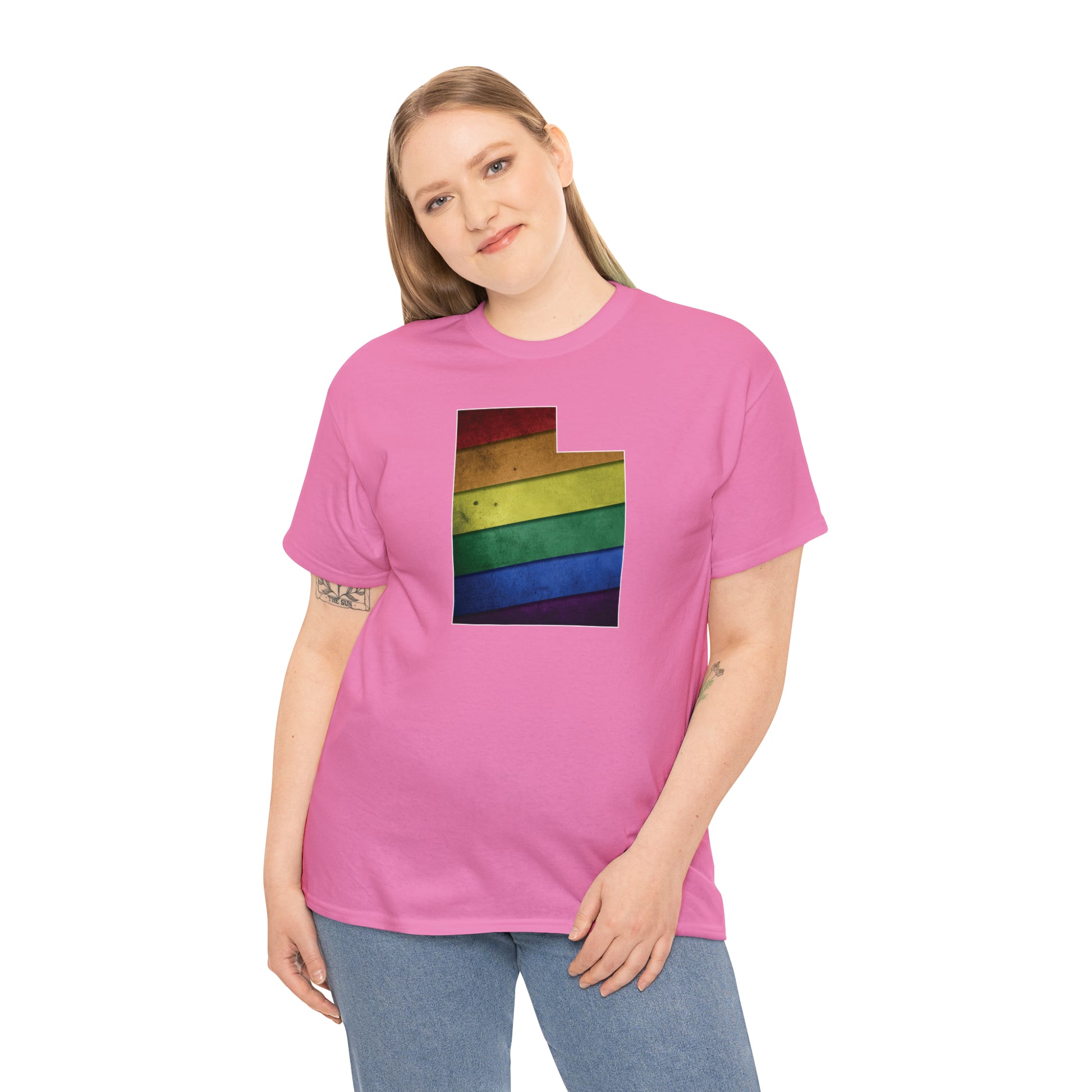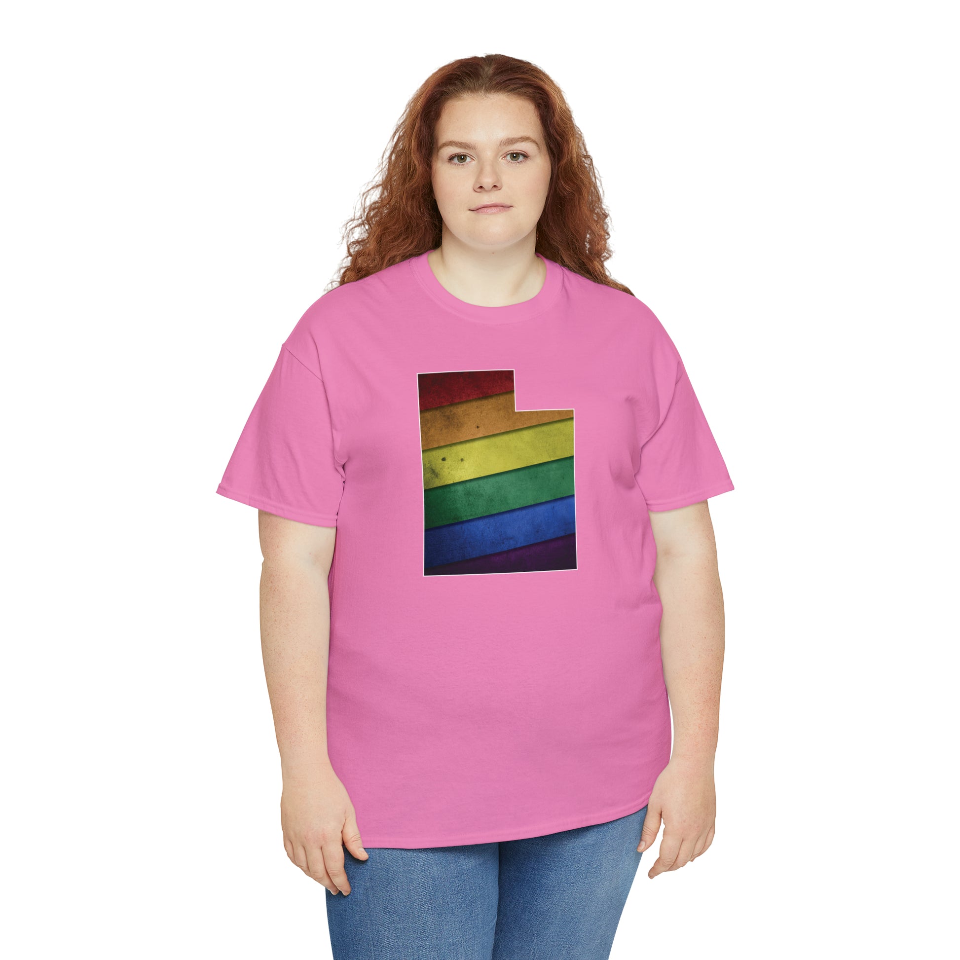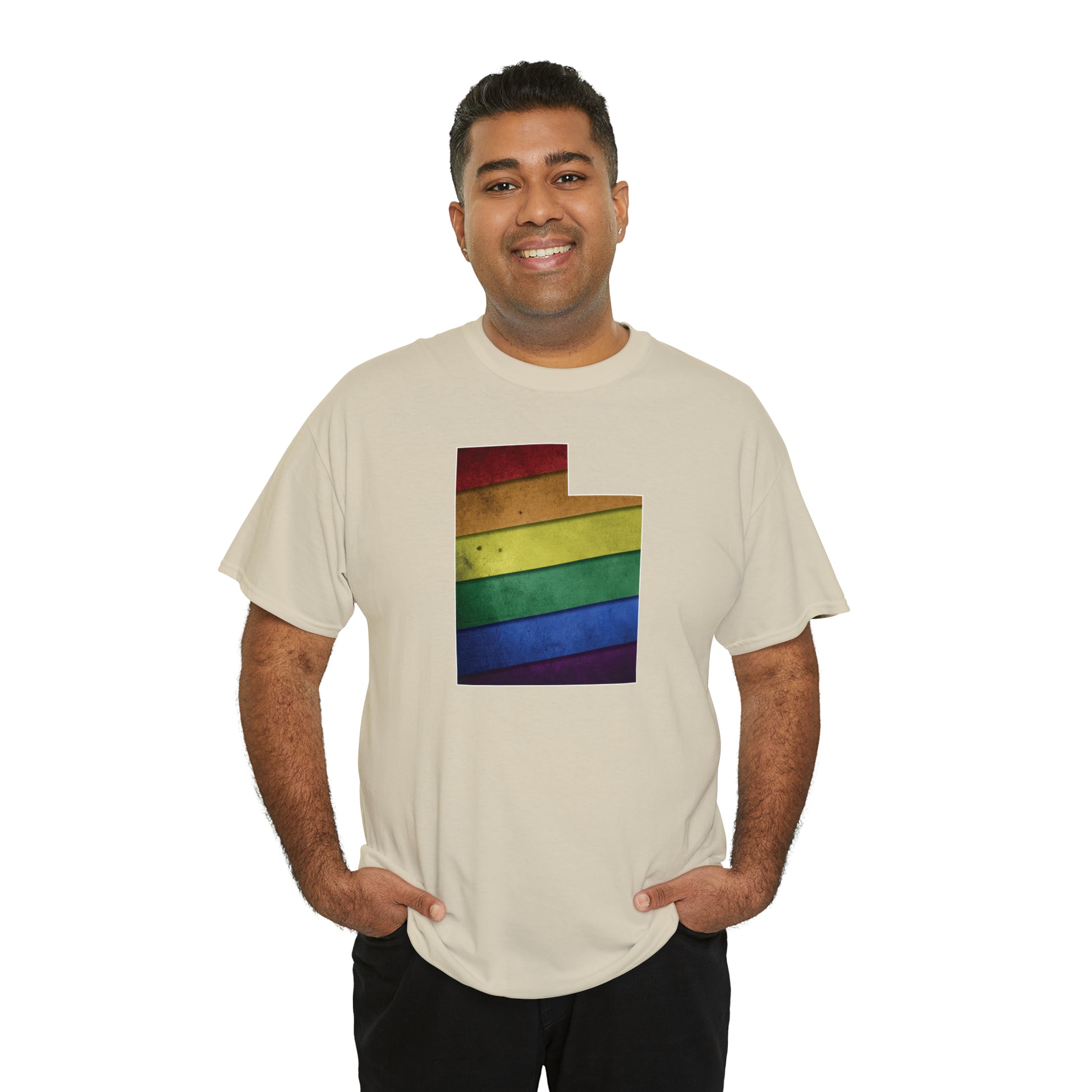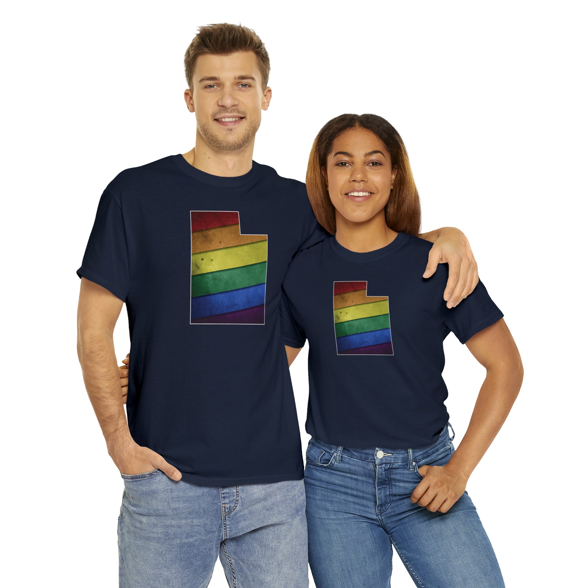 UTAH! Celebrate Pride Month! Let your colors fly with this soft, comfortable premium pride shirt. A rainbow state of Utah is front and center, with an artistic and visually captivating background. This commemorative tee completes any outfit. And it makes a terrific souvenir to remind you of the festivities for years to come! The shirt comes in several loud and proud colors with sizes up to 5XL!