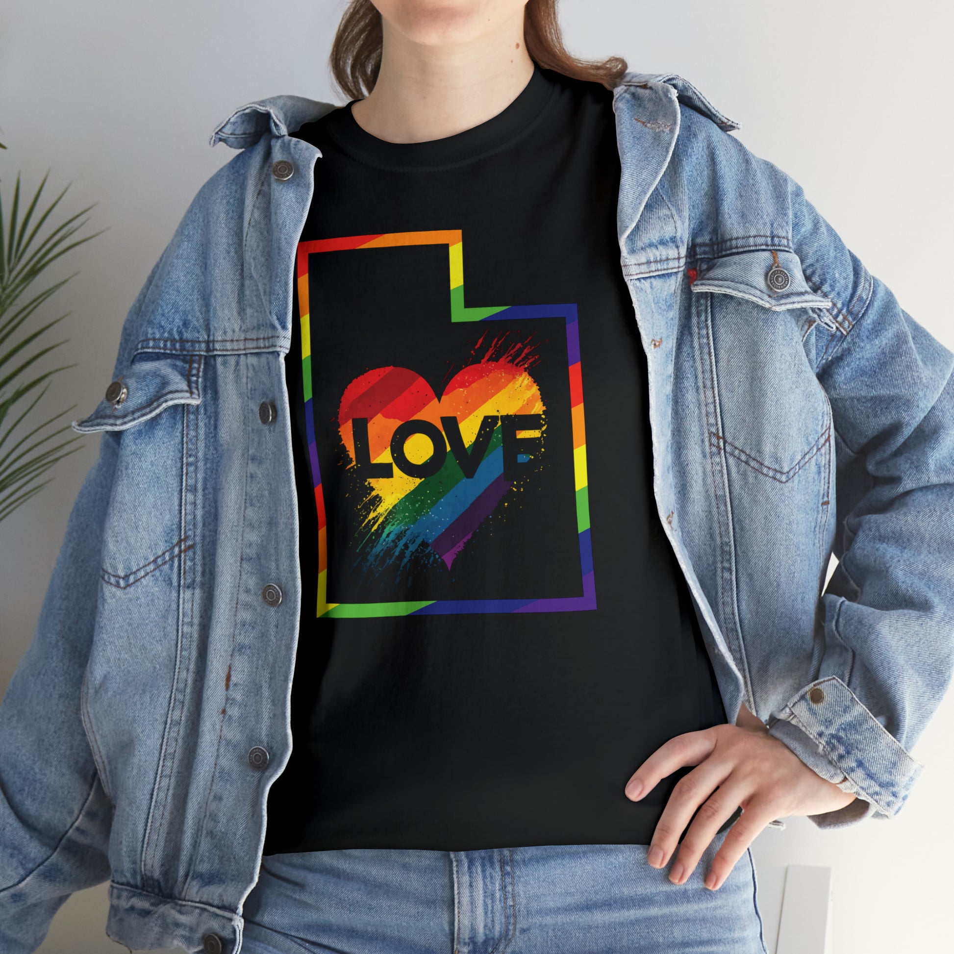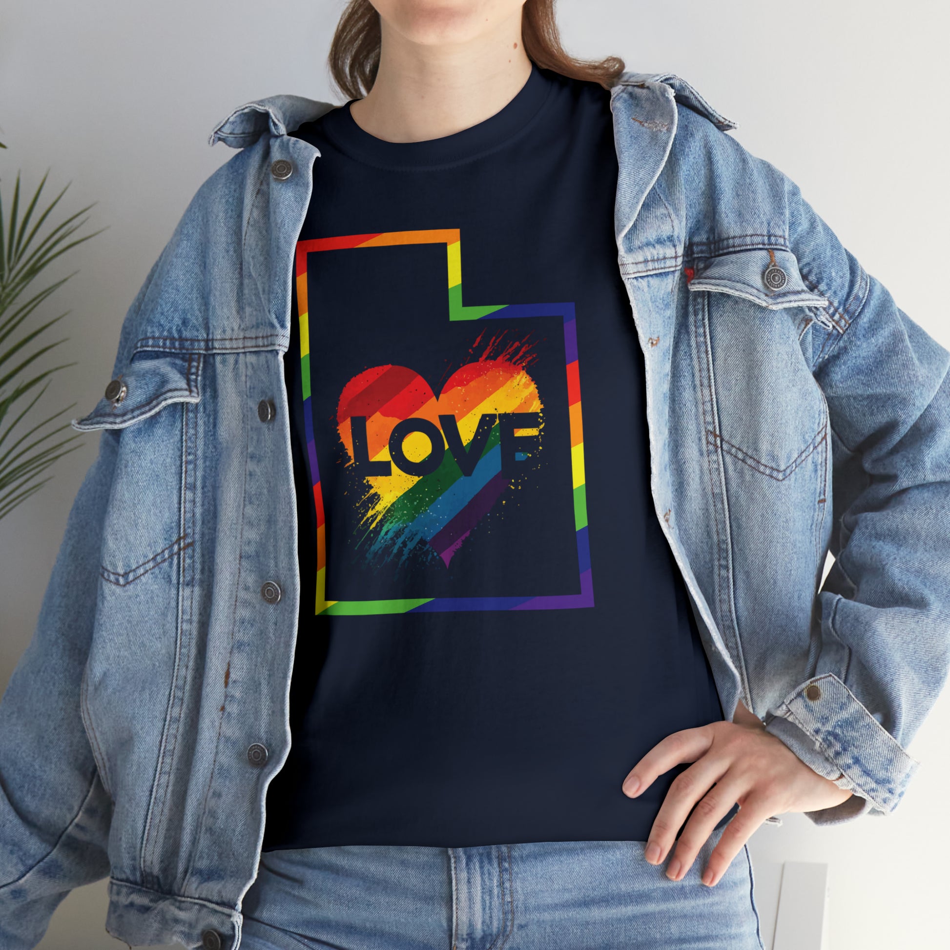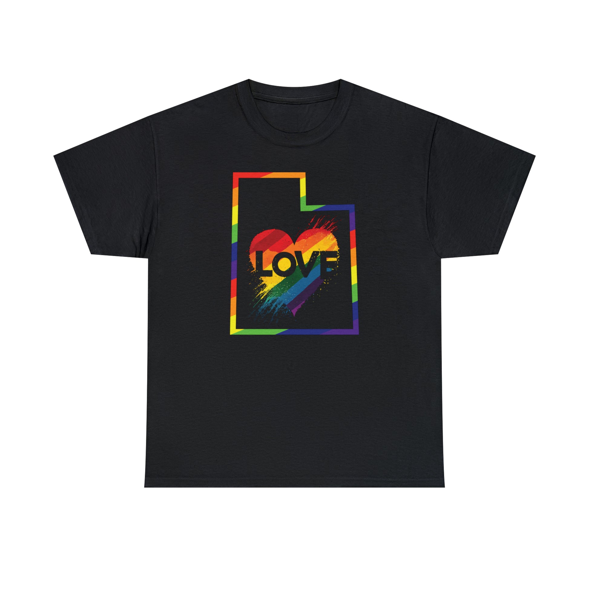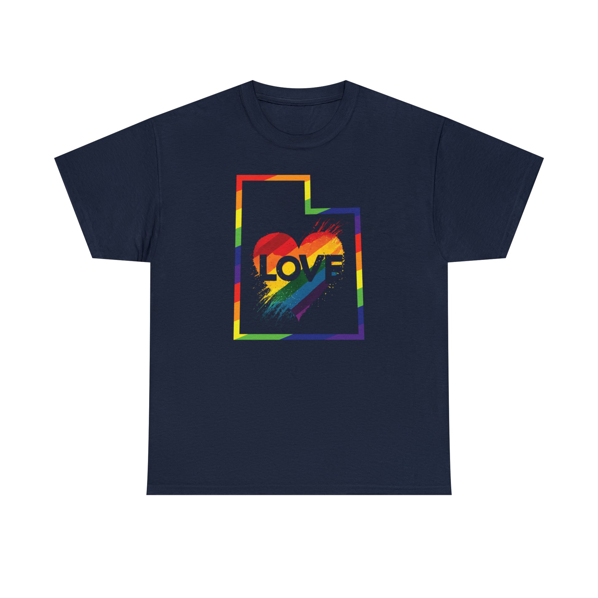 UTAH! Celebrate Pride Month! Let your colors fly with this soft, comfortable premium pride shirt. A rainbow UTAH with a Love Heart is front and center, with an artistic and visually captivating background. This striking tee completes any outfit. The shirt comes in several loud and proud colors with sizes up to 5XL!